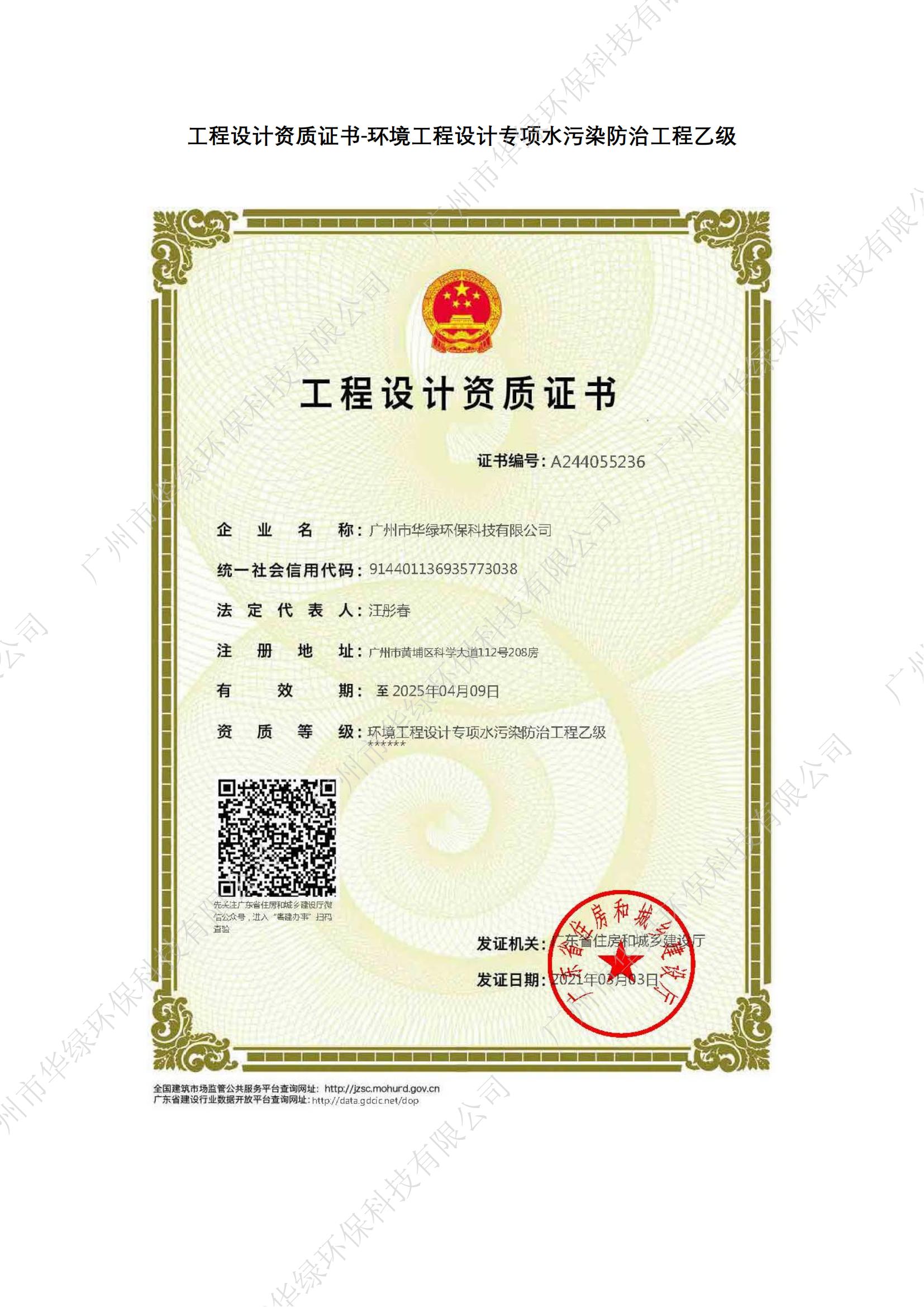工程設(shè)計資質(zhì)證書-廢水治理乙級